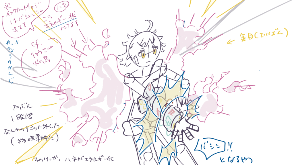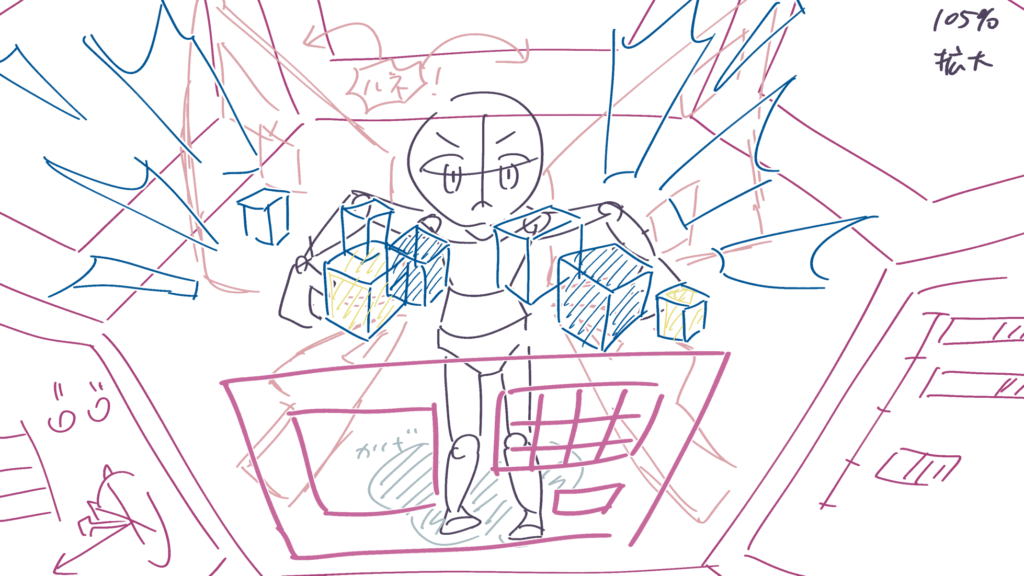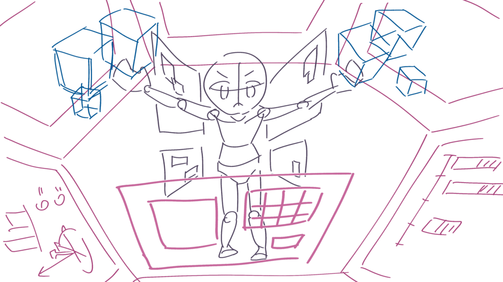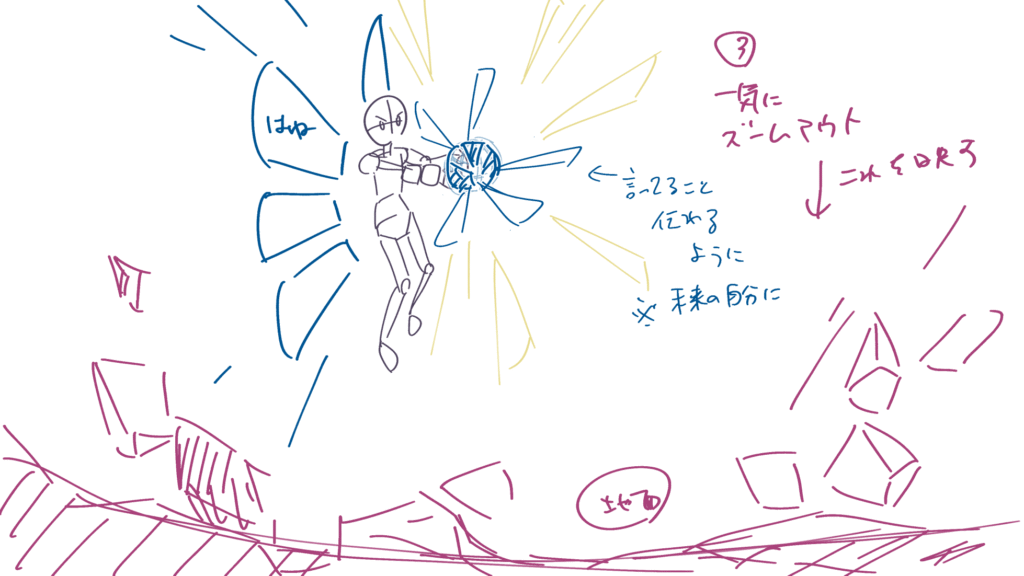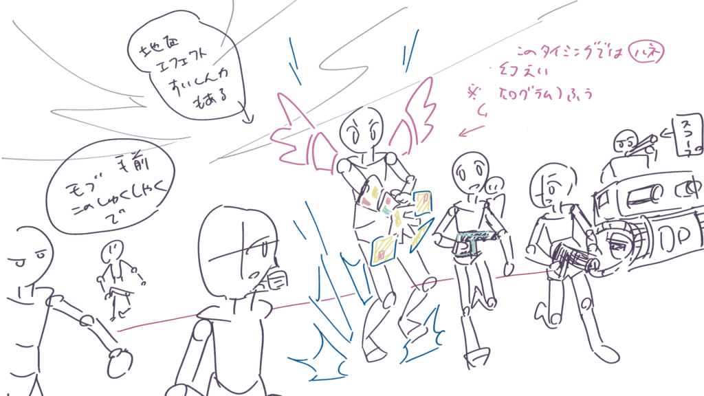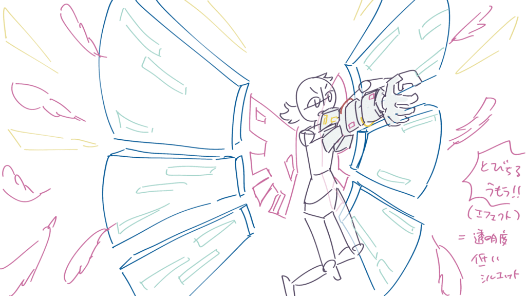 主人公の大技です。支援AI(メカ内部)の活躍カットからです。