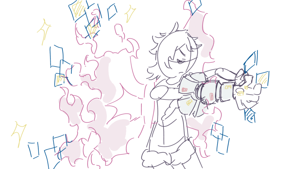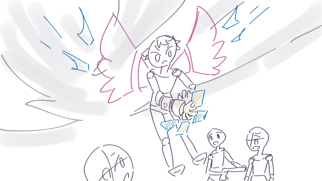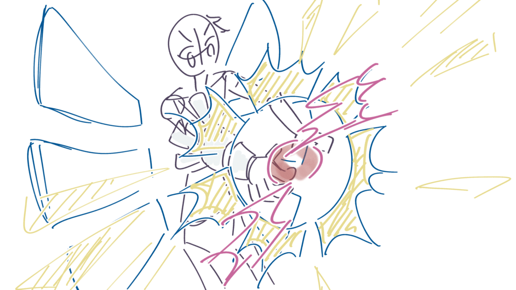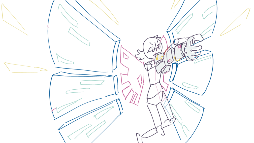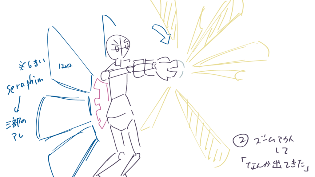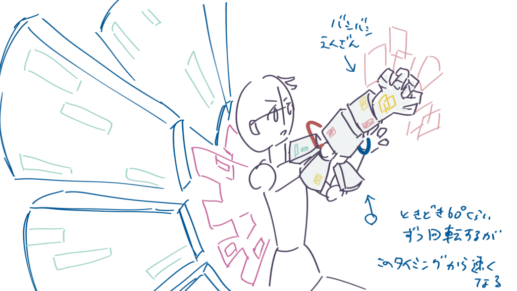 主人公の大技です。支援AI(メカ内部)の活躍カットからです。