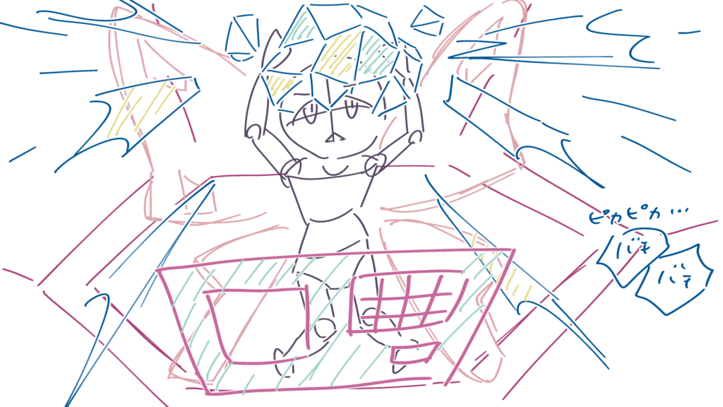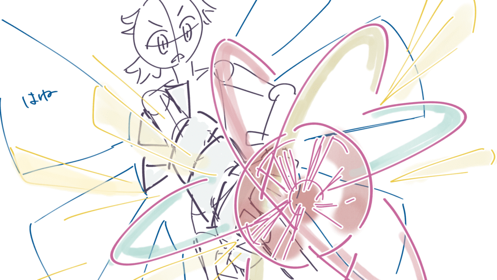 最後までラフコンテが描けたので、冒頭から25秒分(タイトルコールが2秒)、パラパラアニメにしてみました。