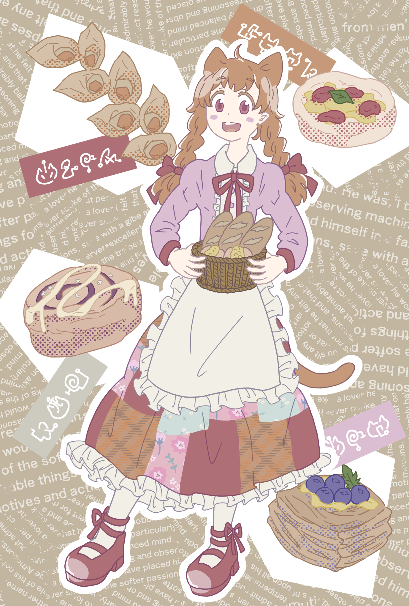 ネコ耳のパン屋さんです。カントリー風の女の子に描きました。